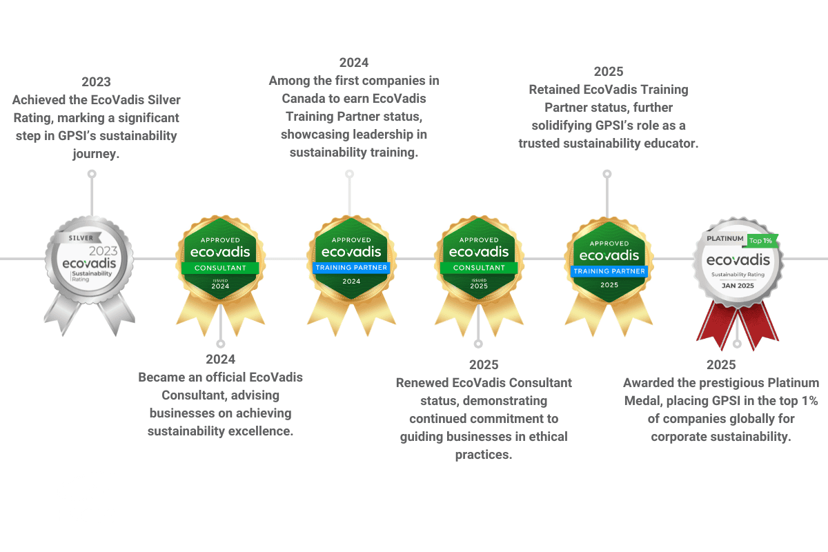 Ready to secure your company’s future as a sustainable industry leader? GPSI’s strategic expertise removes the complexity from EcoVadis certification, empowering decision-makers and executive teams to achieve top performance, unlock new opportunities, and build enduring value.